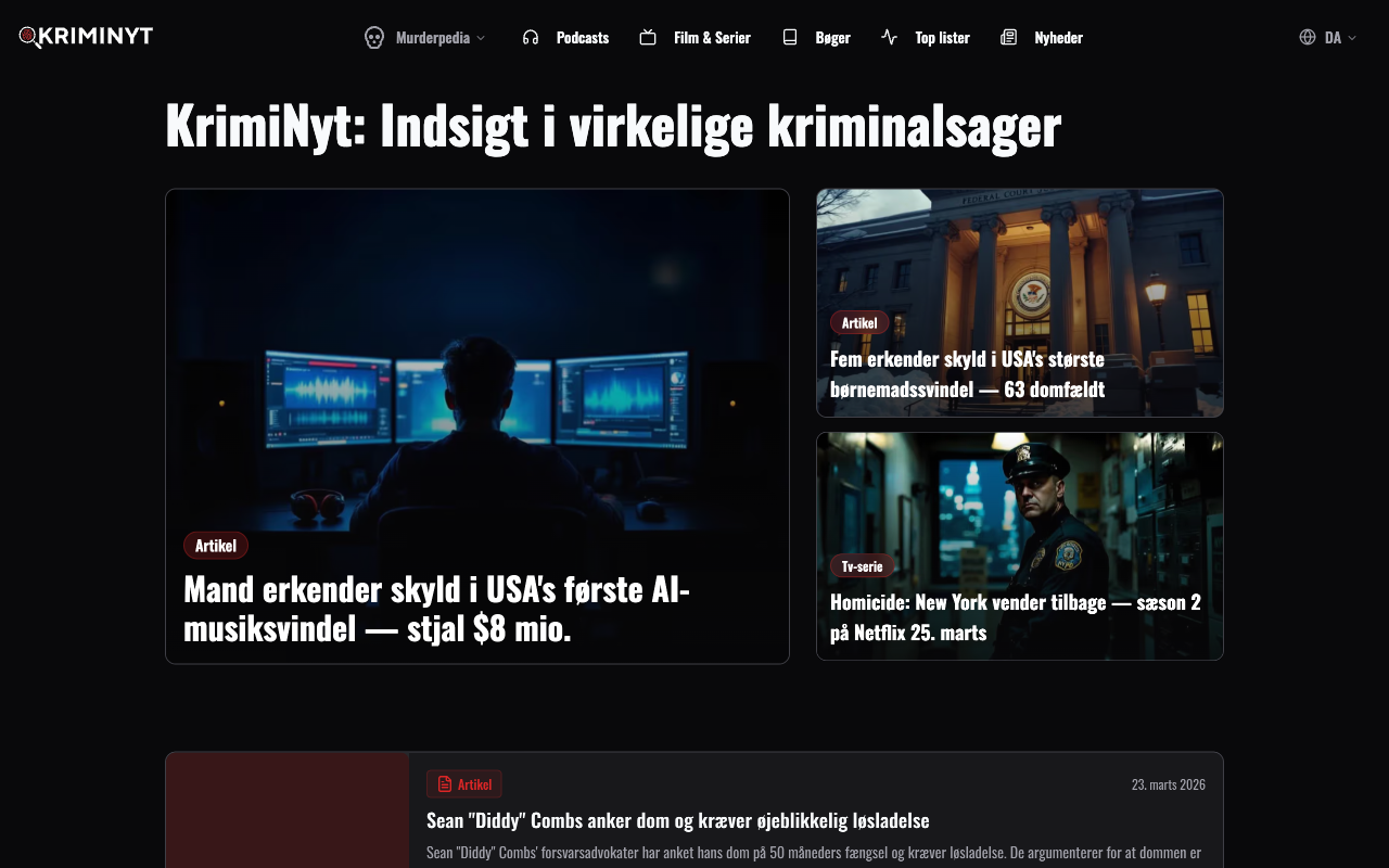→KrimiNyt is our own media platform — built to test how content performs in a world where AI is part of the audience. We experiment with formats, distribution and monetization in real time. Not theory — practice.